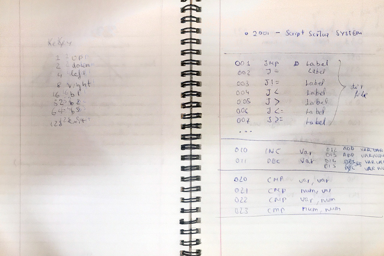 It seems that at 2001 I updated the notebook with an idea I had about a scripting system.