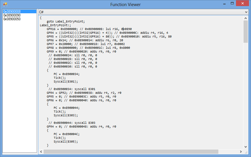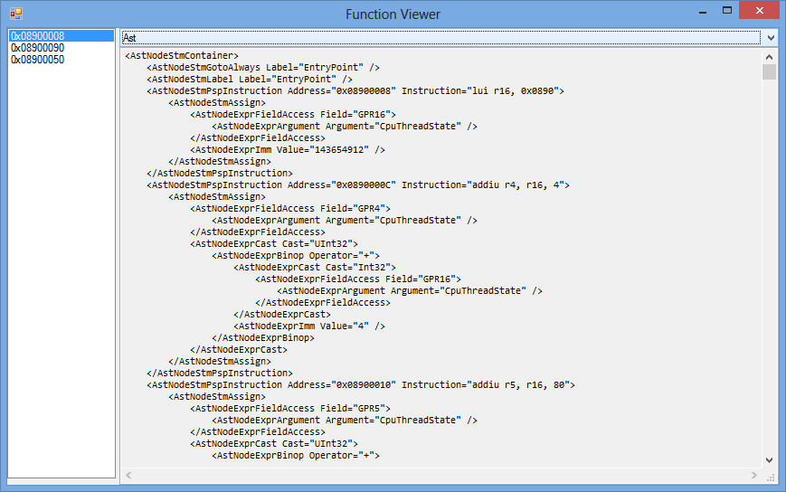 CsPspEmu: New AST and disassembler