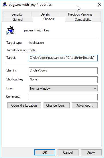 As an additional trick, you can customize your shortcut to include arguments. You can for example run pageant at startup specifying an encrypted private key at startup for convenience.